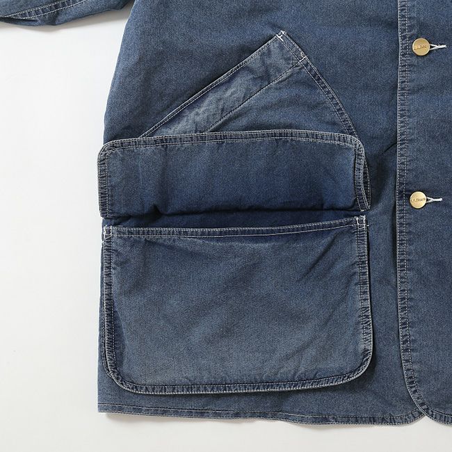 送料無料 J.CREW バンドカラー シャンブレー長袖ワークシャツ Mサイズ(日本L相当)通気性◎薄手素材 ジェイクルー ノーカラー CHAMBRAY