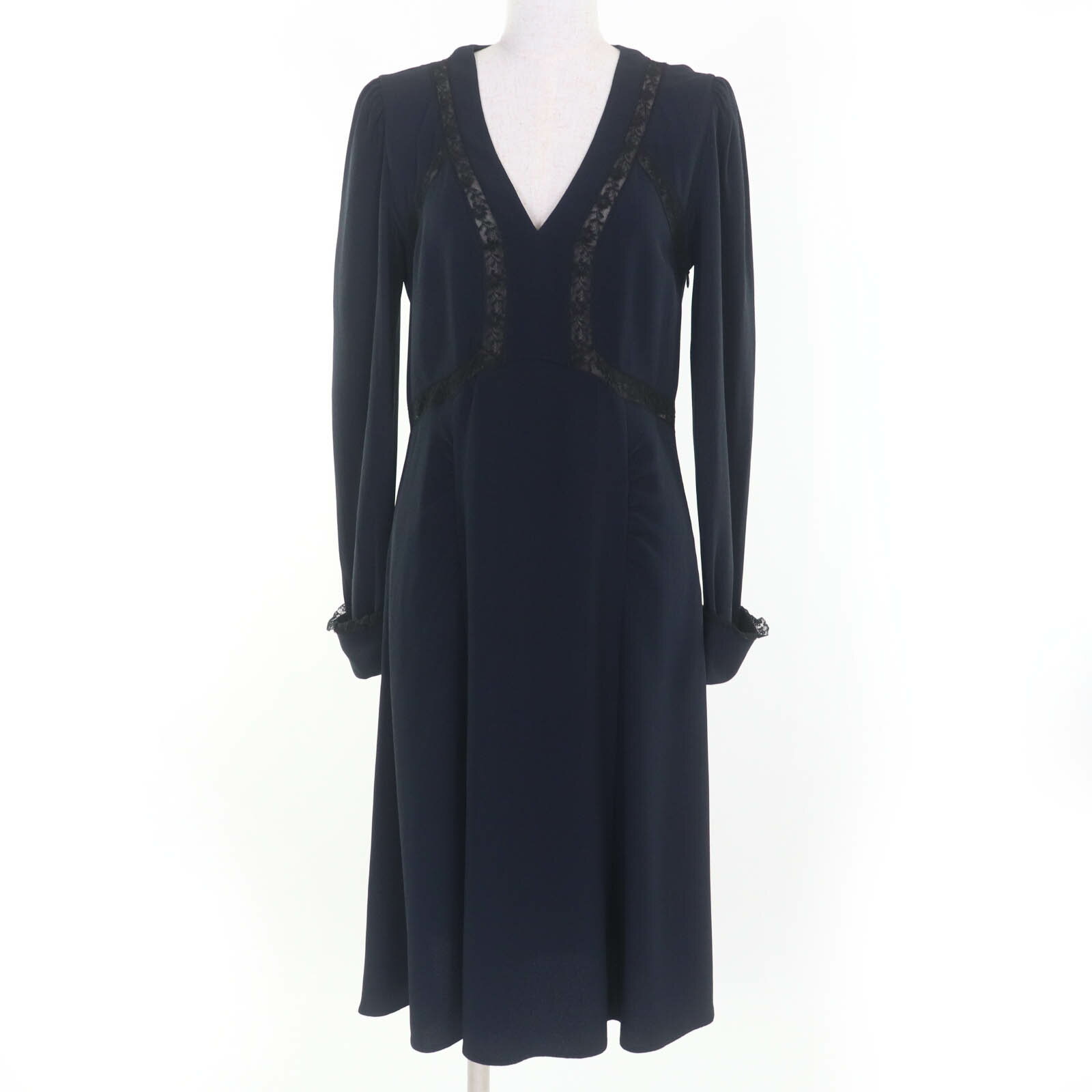 極美品☆PRADA プラダ コットン 美シルエット ベルト付 プリーツ 半袖 ワンピース ネイビー 40 正規品 レディース【中古】