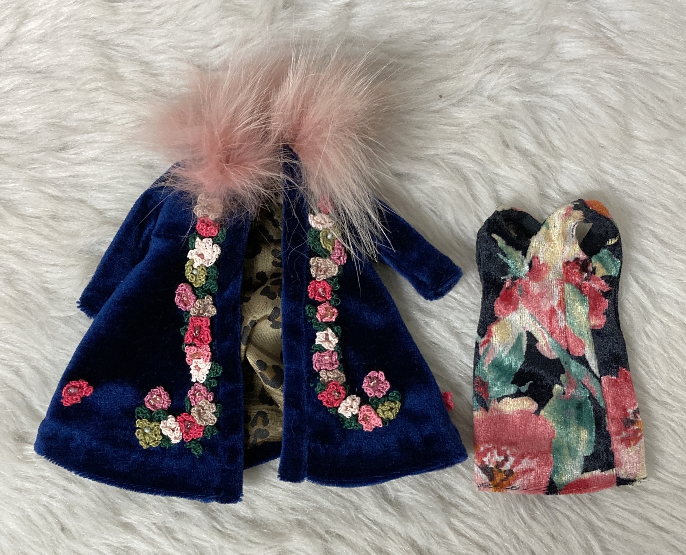ドール衣装 ネオブライスサイズ 耳付きファーコートとワンピースのセット