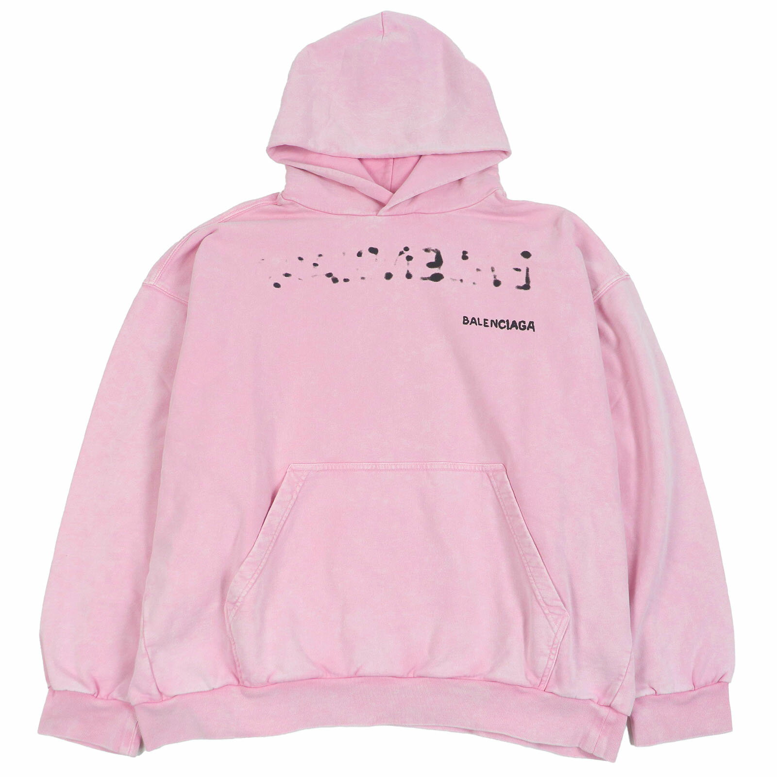 極美品□BALENCIAGA バレンシアガ 578135 キャンペーンロゴプリント プルオーバー スウェットパーカー フーディー ネオンピンク XS 正規品 メンズ【中古】