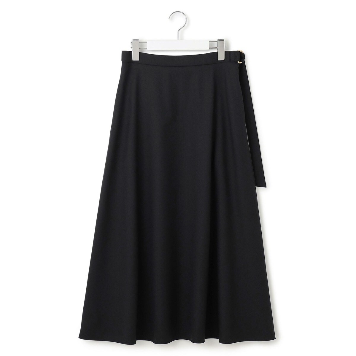 ウエストにベルトのようなデザインを施した、デザインスカート。スッキリと見せてくれる微フレアシルエットで、オフィスなどきちんと見えたいシーンにもおすすめのアイテムです。ウエストの後ろはゴム仕様で楽な穿き心地に。同素材のシャツと合わせてセットアップ風に着用すれば、より洗練された印象を与えてくれます。ざっくりとしたニットや、ブラウスなど合わせるアイテム次第で表情を変えるため、幅広いシーンで活躍する1枚。カラーはシックで上品な印象を与えるブラック(#005)、深みのある落ち着いたグリーン(#064)の2色展開です。