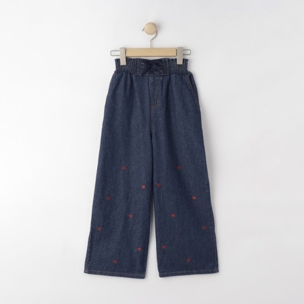 ハート柄刺繍 ブラックデニム ワイドパンツ Mサイズ