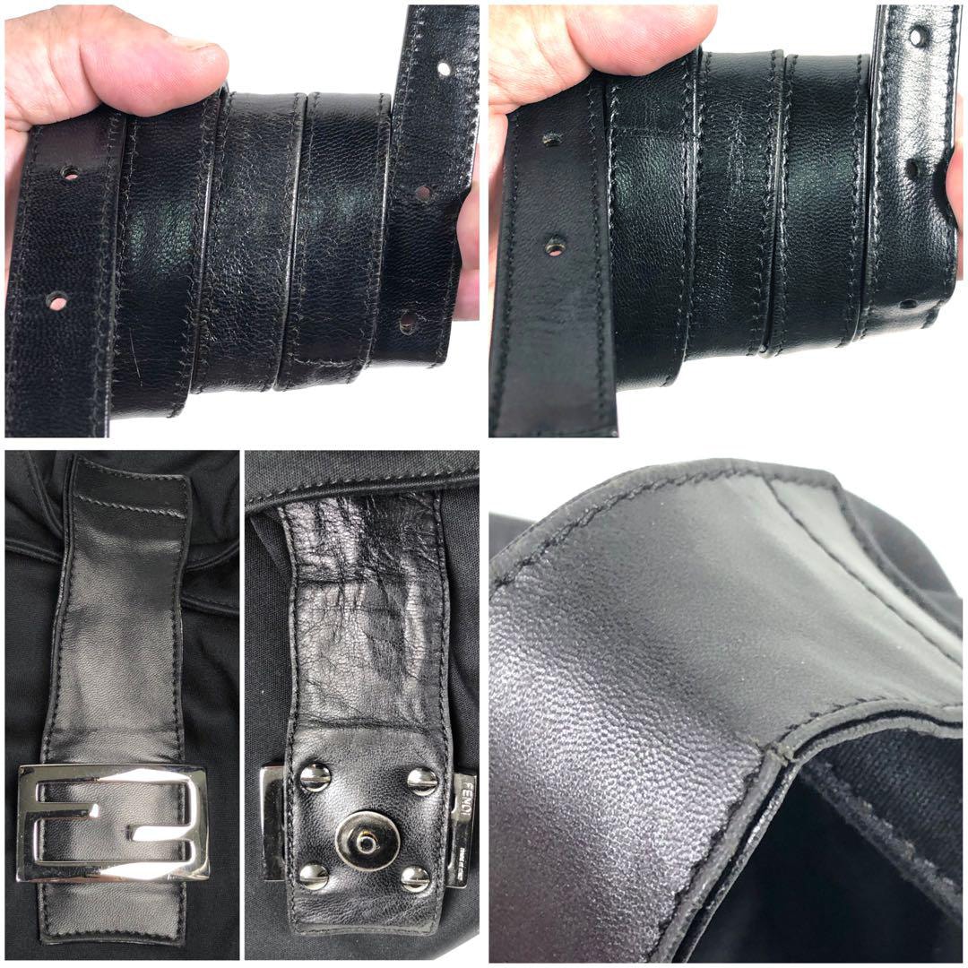 フロントロゴ部分のレザー部分やベルト付け根部分は