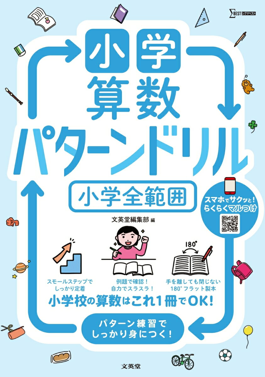 「予習・先取り」「授業との併用」「中学入学前の総復習」→パターンドリルに全部お任せ!「パターン」×「反復練習」のシンプル設計で、自力で解き進められます!※文系でも数学が入試必須となる傾向にあり、今後ますます算数・数学が重要に!【特長1】小学校6年間の算数がこれ1冊で!小学校6年間で習う算数の内容を1冊に凝縮!《算数の基礎固め》や《年度末や進学前の総復習》、《基礎から学習したい中学生・高校生や社会人》にも最適です。【特長2】中学以降に困らない算数の土台を身につける!中学数学をスムーズに始めるには、小学校で学ぶ算数の基礎がしっかり身についていることが大切です。本書では、中学数学につながる本当に重要な単元だけを厳選。短期間で算数の基礎をしっかり固めることができます。【特長3】くり返し解くだけでしっかり定着!スモールステップで同じタイプの問題をくり返し解くことにより、基礎をしっかり積み上げます。解くたびに理解が深まり、自然と問題が解けるようになります。【特長4】例題&くわしい解説で、スッキリ理解!例題で問題の解き方や重要なポイントを丁寧に解説!わからない問題も、解説を読んでもう一度チャレンジすることでしっかり定着します。また、各項目の重要度を3段階でレベル分けしているので、時間が無い場合は重要な単元から取り組む使い方もおすすめです。【特長5】1回2ページだから取り組みやすい!1回たったの2ページなので、算数が苦手な人でも無理なく自分のペースで進められます。また、180度フラットに開く製本なので、学習中にページが閉じるストレスを感じずに快適に学習できます。■スマホでサクッと!「らくらくマルつけシステム」■スマホやタブレットでQRコードを読み込むだけで、解答入りの紙面を簡単に確認できます。巻末の答えを探す手間が省けて、スムーズに学習を進められます。