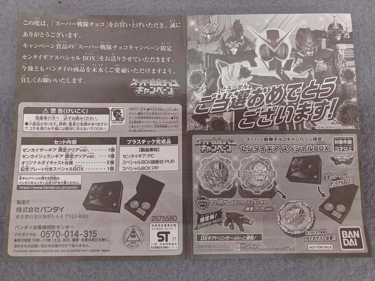 型番:2021スーパー戦隊チョコキャンペーン センタイギアスペシャ
