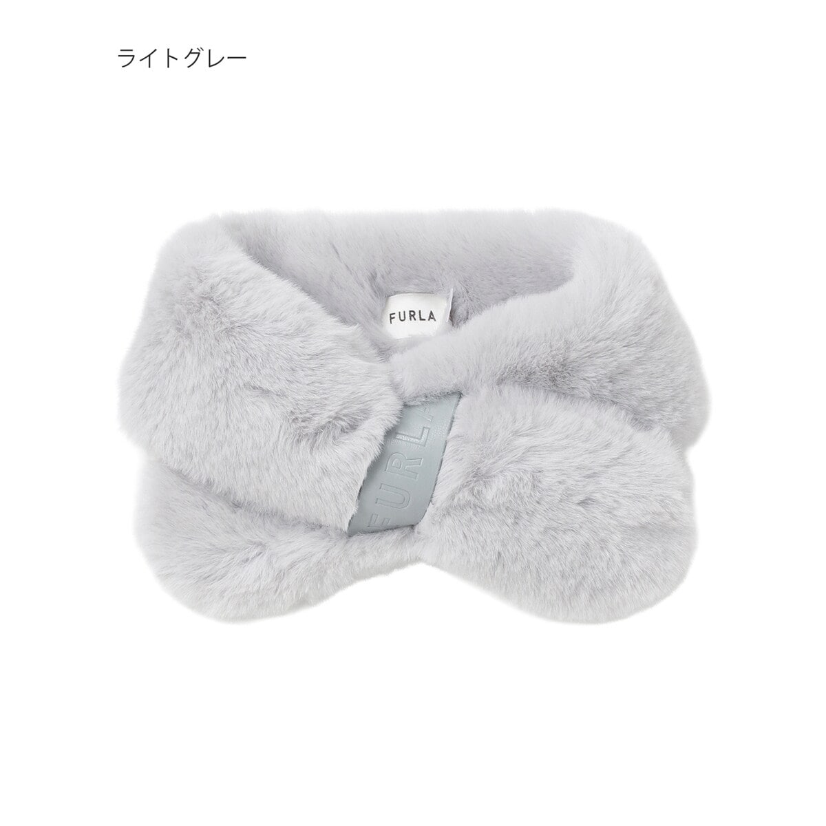 リボン風フェイクファーマフラー 10×77cm ロゴプレート付き