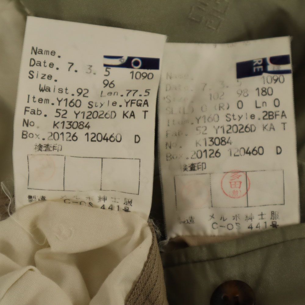 90年代のオールドのジパンシーになります。サイズ不明、実寸も参考にお願い致します。タグにお名前の印字があり、マスキングテープで目隠しさせて頂いております。全体的にスレや色褪せあり。ジャケットボタン3個欠損、予備のボタン2個あり。所々に引っ掛け、袖口裏地やパンツ裏地股やポケット、裾に汚れあり。古着にご理解の上ご購入をお願い致します。