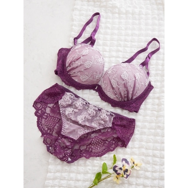 繊細なフラワー刺繍が華やかなムードを演出するブラ&ショーツのセット。