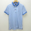H■トミーヒルフィガー/TOMMYHILFIGER SLIM FIT 鹿の子地 半袖ポロシャツ【M】水色/MENS■22【中古】