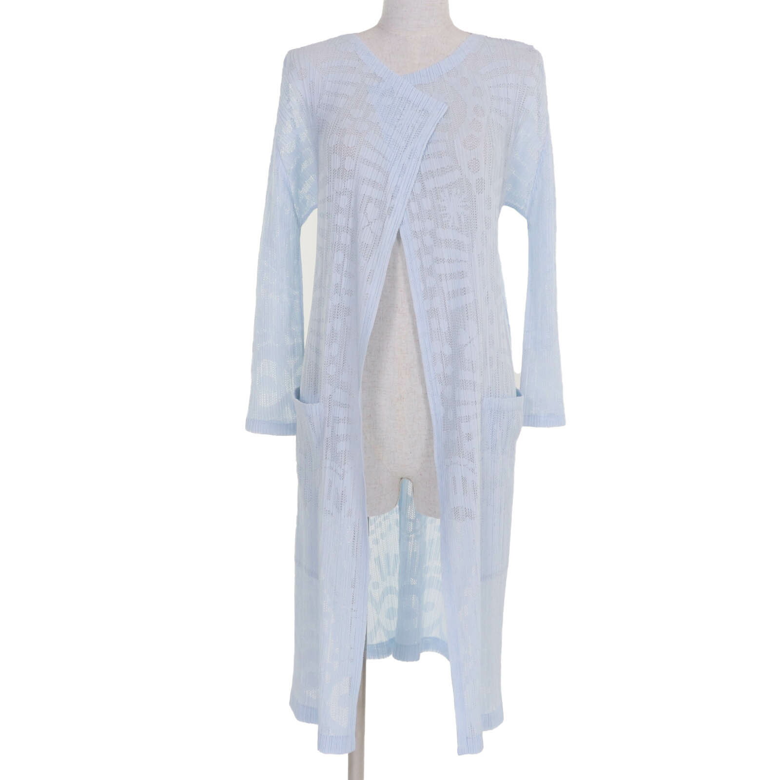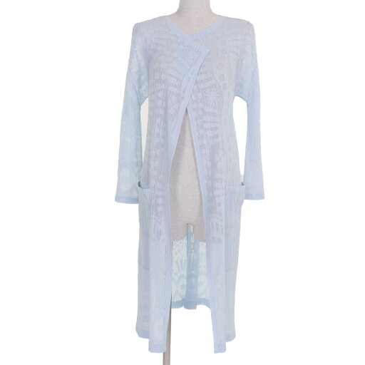 PLEATS PLEASE(プリーツプリーズ) カーディガン サイズ3 L レディース美品 - PP23-JA121 ブルー 七分袖/プリーツ/変形デザイン/ロング丈