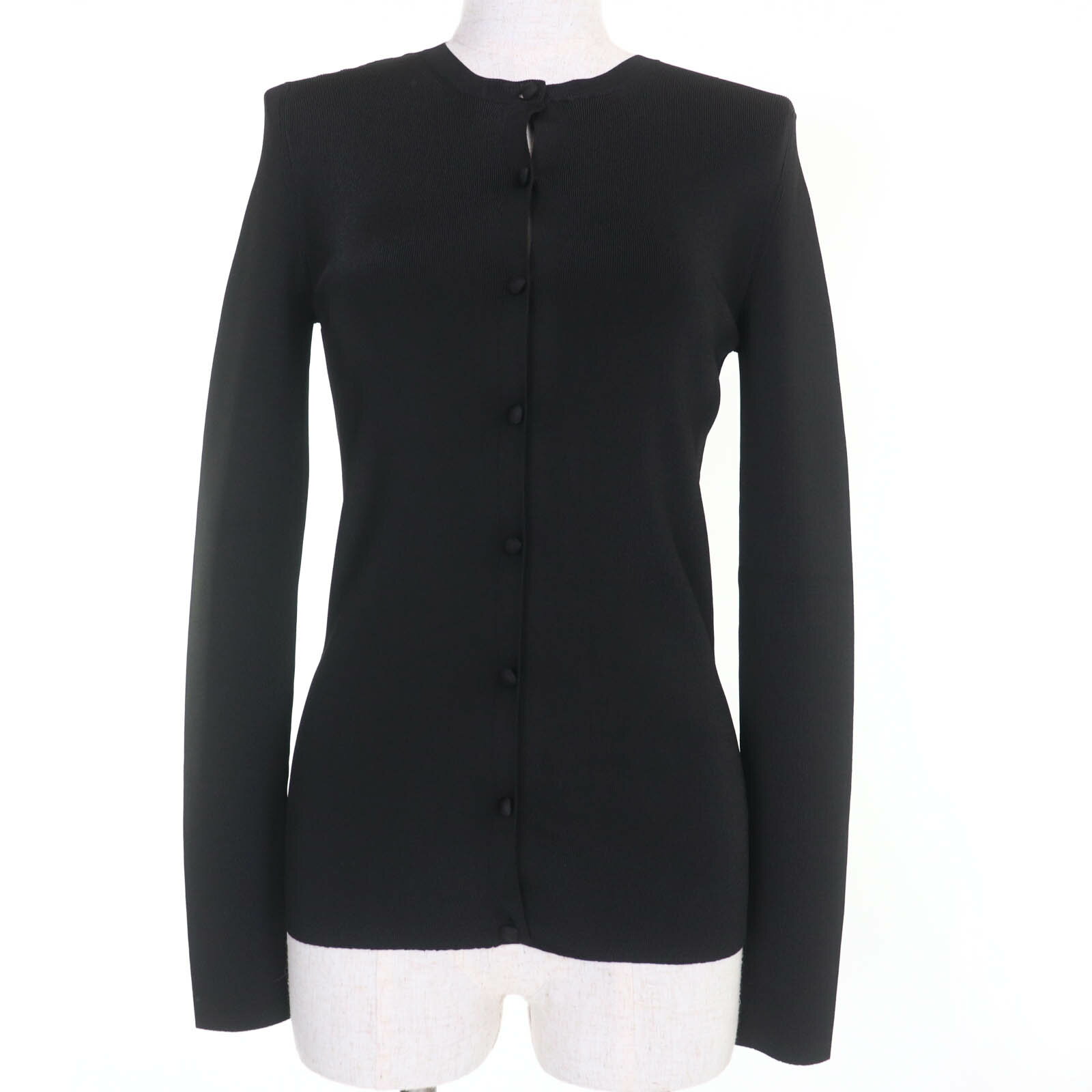 極美品□BALENCIAGA バレンシアガ 555280 ウール ジャガードロゴ オーバーサイズ ニットカーディガン ブラック S イタリア製 正規品 メンズ【中古】