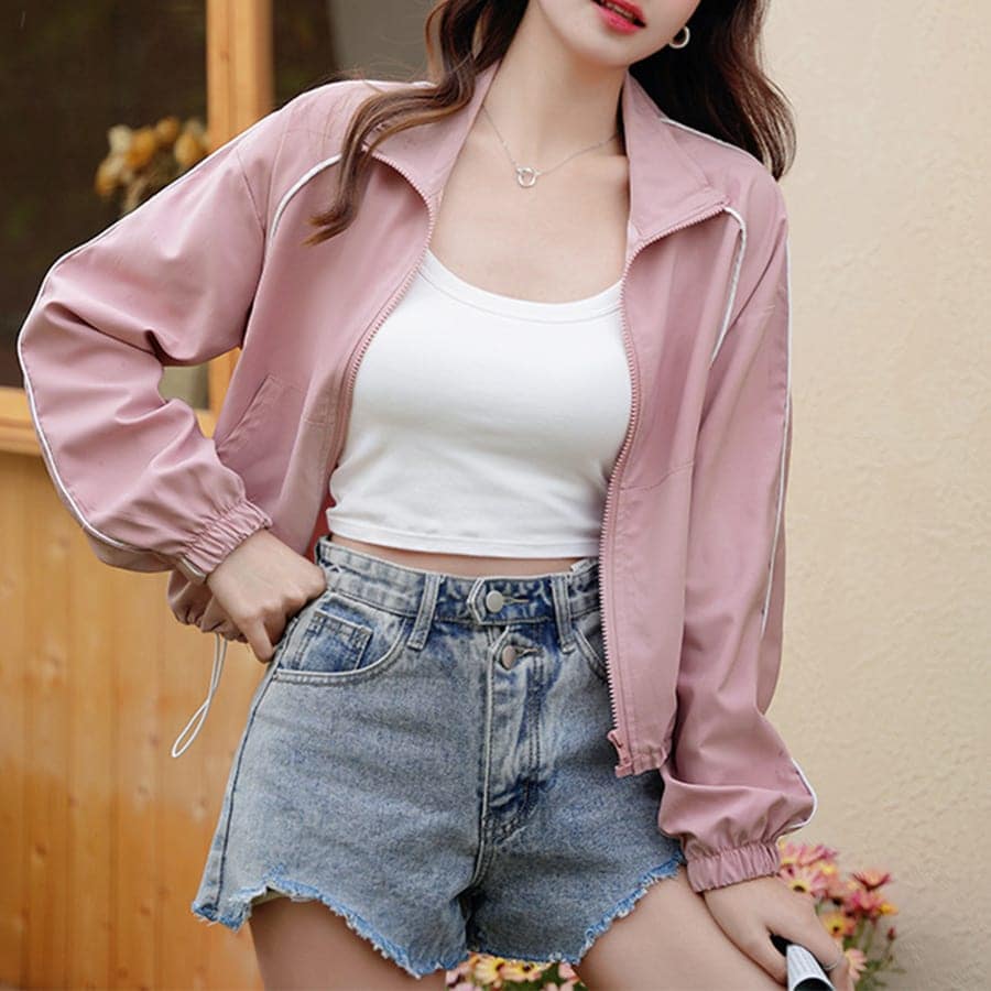 クロップド丈 ジャージ トラックジャケット ブラック ストリート 韓国