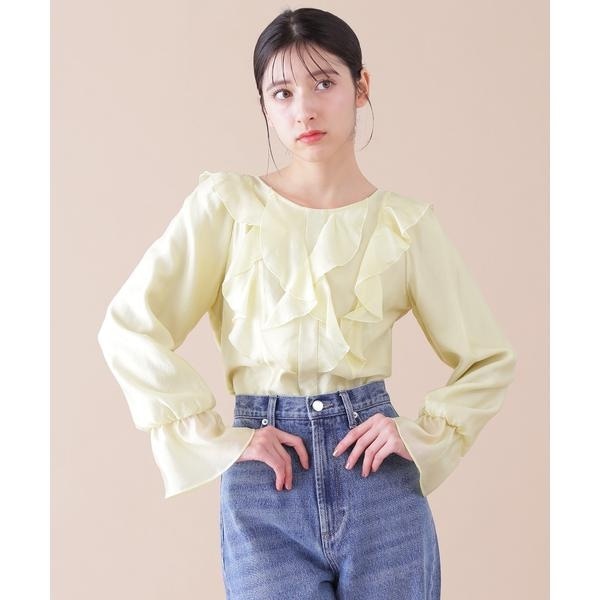 大人気だったシアーブラウスをすっきりとしたデザインにアップデート!今回はソフトなシボの表面感と光沢が新しいシアー素材を使用しています。また、短丈とウエストがすっきりとしたデザインに合わせて、フロントラッフルの位置とボリュームすぎない分量にも拘った一枚。短丈なのでパンツにもスカートにも合わせやすいバランスです。大人レディなホワイト、今年トレンドカラーのイエローの2色展開です。※撮影時照明の関係により、色味が違って見える場合がございます。またパソコン・スマートフォンなどの環境により、若干製品と画像のカラーが異なる場合もございます。予めご了承ください。商品の色味は、商品単品画像をご参照下さい。※商品画像はサンプルのため、色味やサイズ等の仕様に変更がある場合がございますので、予めご了承ください。