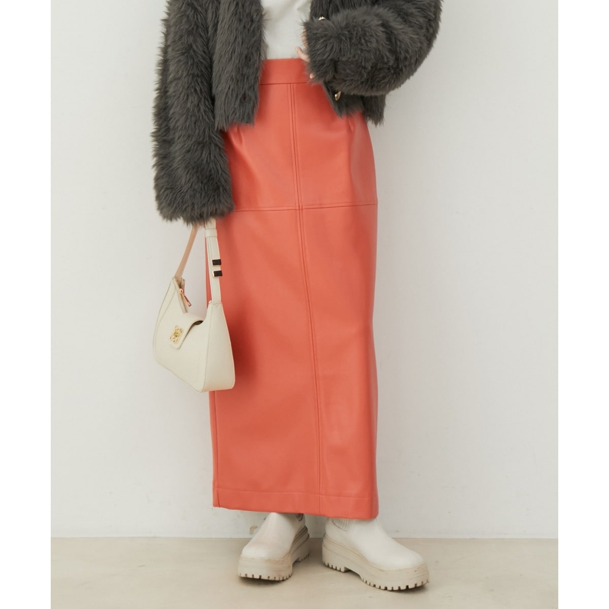 ELENDEEK フェイクレザーミックスIラインスカート