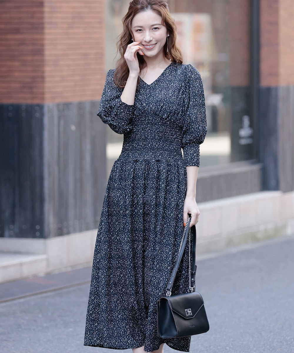 ブラウジング風の身頃とシャーリングが引き締まったウエストラインを演出してくれます。