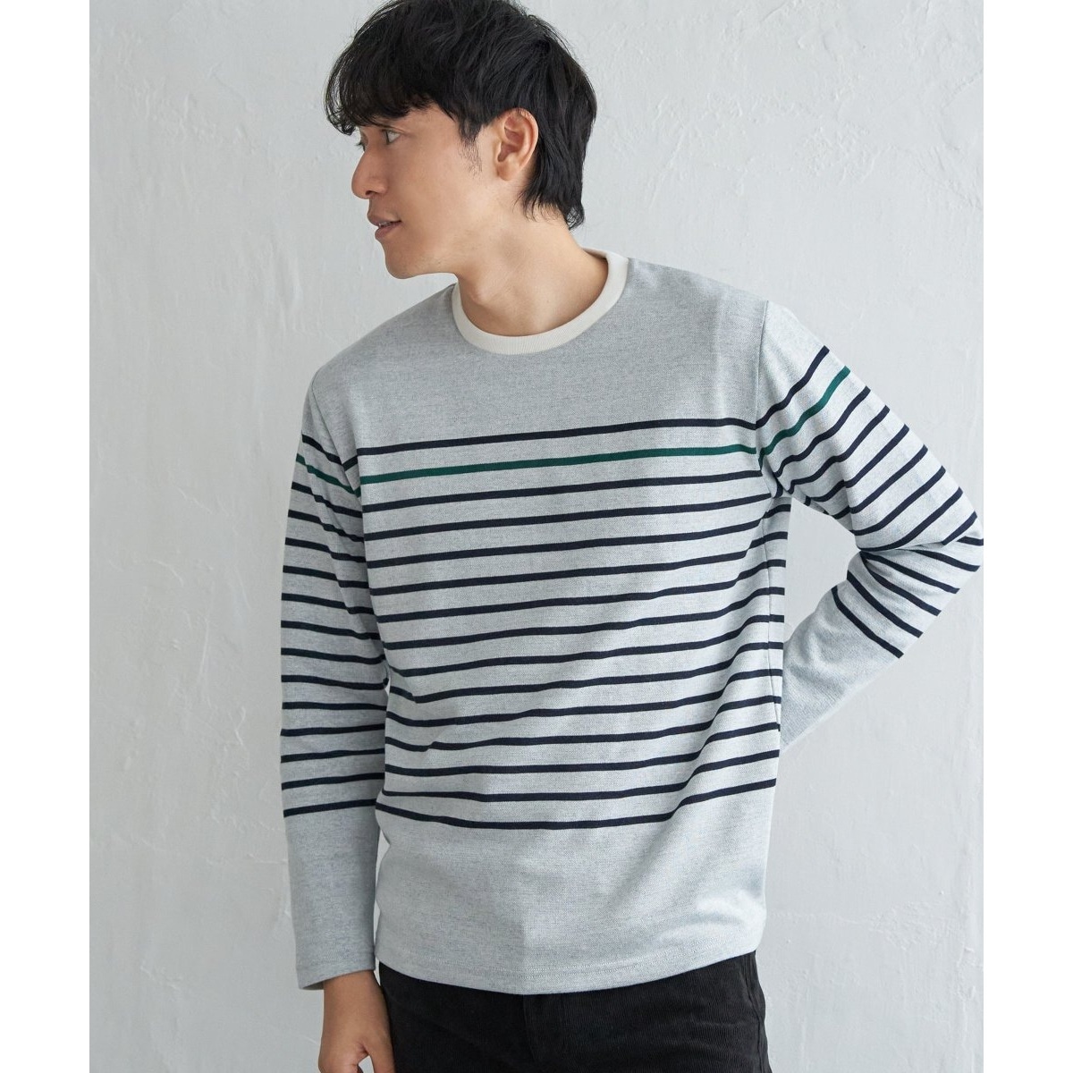 季節感のあるさり気ない配色ボーダーロンT。