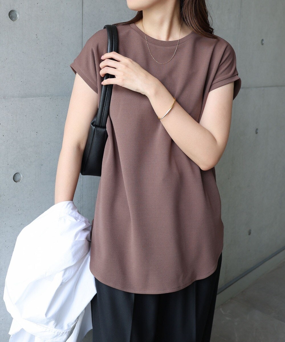 andme きれいめ梨地ポンチドルマンスリーブトップス