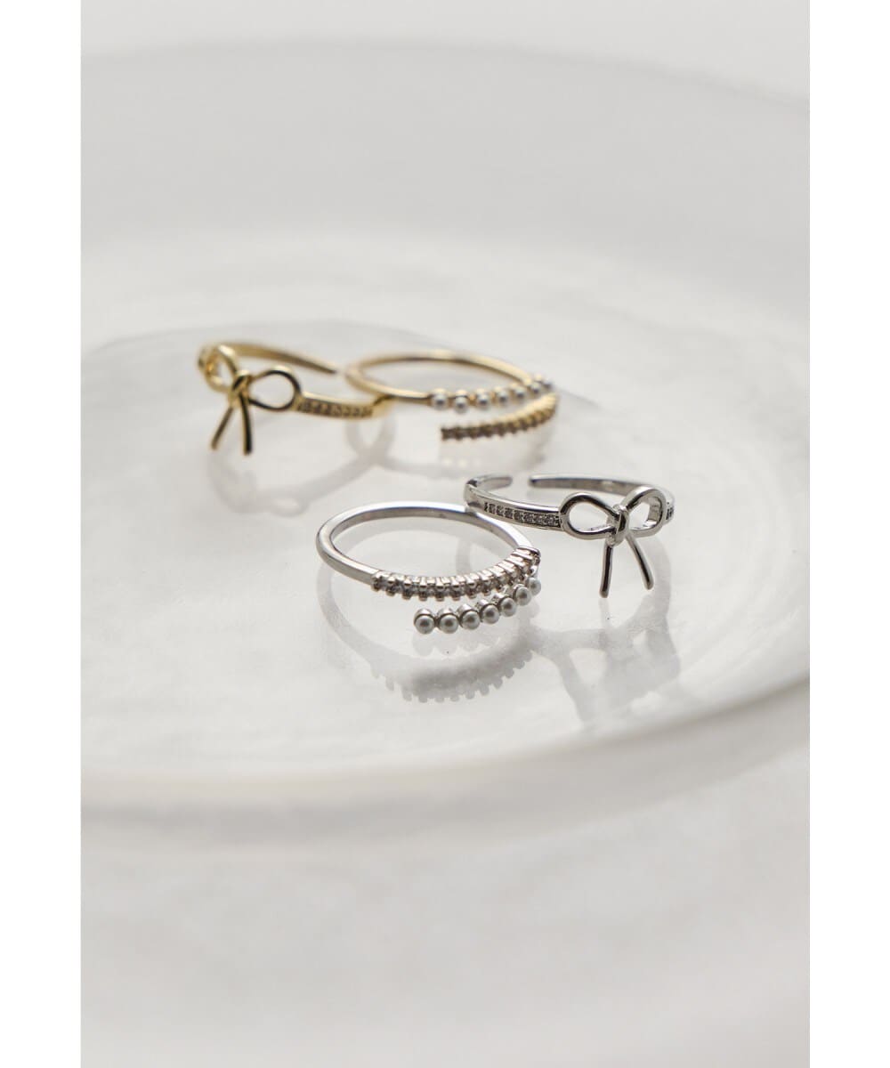 niana ニアナ 愛らしいリボンモチーフと華奢なパール×ビジューのリング2本セット。