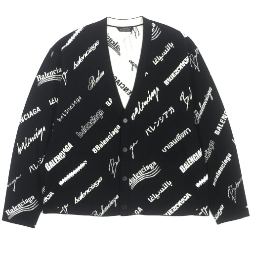 未使用品◎BALENCIAGA バレンシアガ 510243 ヴァージンウール ジャガードロゴ 長袖ニット ピンク ブラック 34 イタリア製 正規品 レディース【中古】