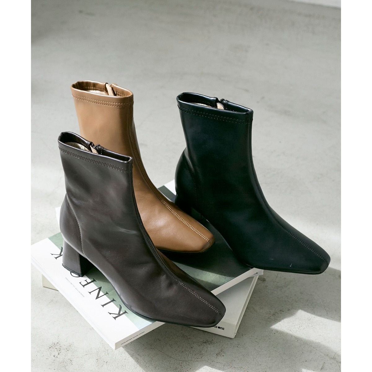 スッキリ見えするスクエアトゥにふかふかインソールで快適な履き心地のショートブーツ