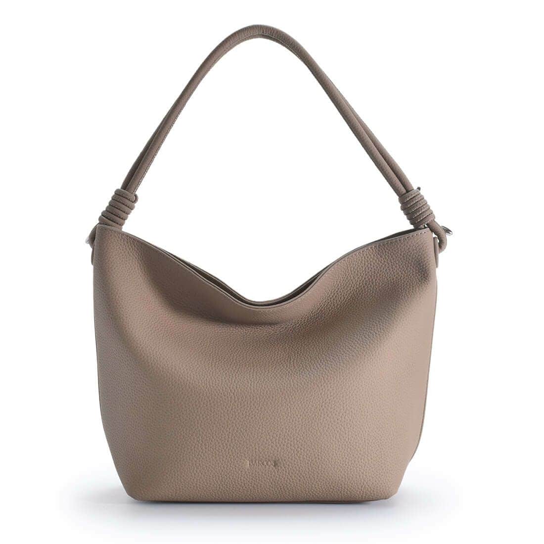 特殊なミシンで縫製したハンドルが特徴的なトレンドのホーボーバッグです。