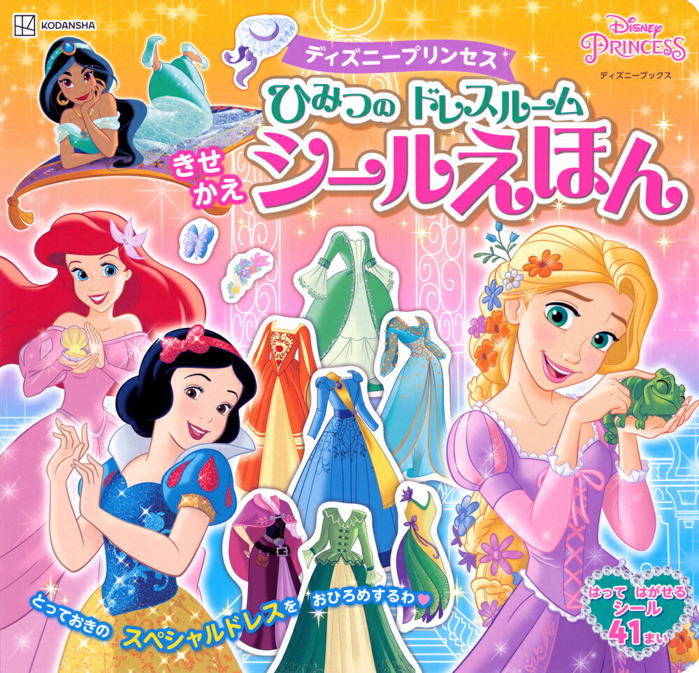 憧れのプリンセスたちときせかえドレスパーティーをしましょう!水色のドレスを着たシンデレラ、黄色いドレスを着たベル、そんな定番のドレスもとってもすてきだけど、実はディズニープリンセスたちは、ほかにもたくさん、まだみんなに見せたことのないひみつのドレスをたくさん持っているの!さぁこのえほんを通して、あこがれのプリンセスたちの、ひみつのクローゼットをのぞいちゃいましょう。そしてドレスたっぷりのきせかえあそびをたのしみましょう。「あなたならこのドレスを着てどこへ行く?」「こんなふうにおしゃれしてだれに会いたい?」プリンセスとたのしく遊んでいるうちにどんどん想像力も磨かれます。ドレスやおしゃれが大好きなお子さんにぴったりなシールえほんです。対象年齢:3歳以上本文は4見開き10ページ、弱粘透明シール3シート。OP袋入り