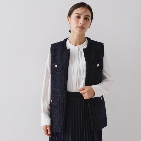 表情のあるツイード素材を使用した、上品なジレ