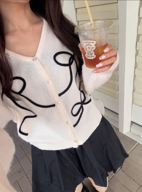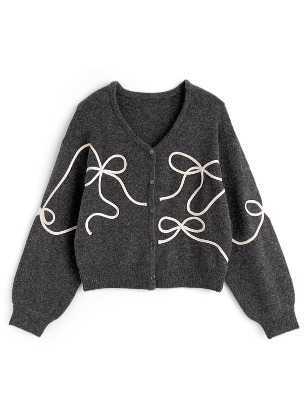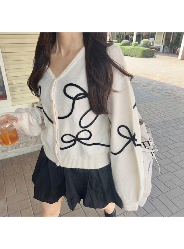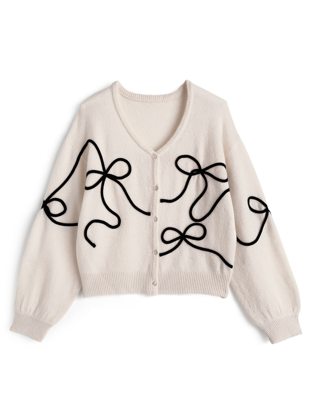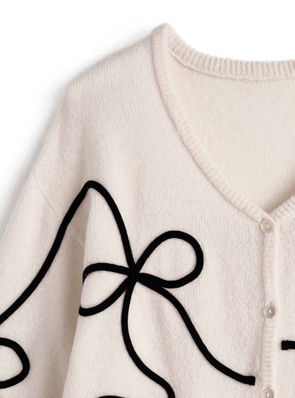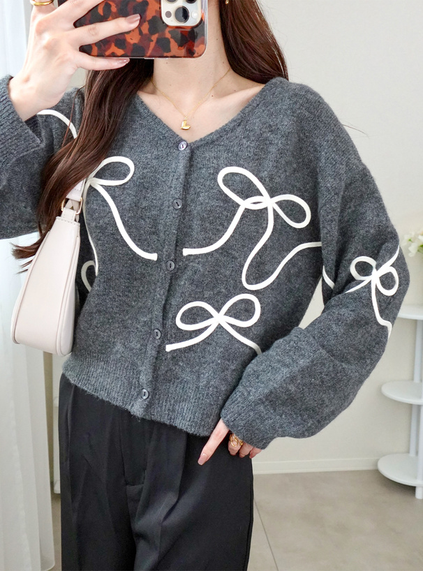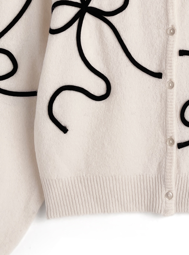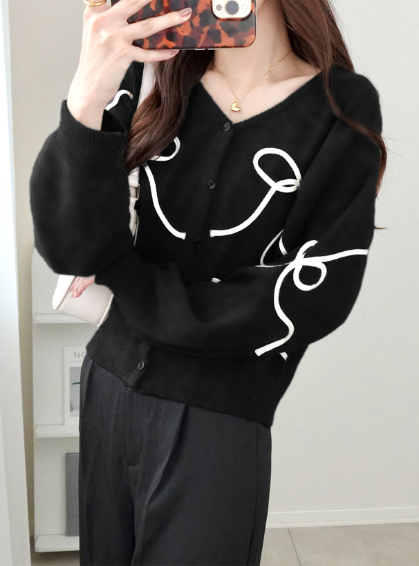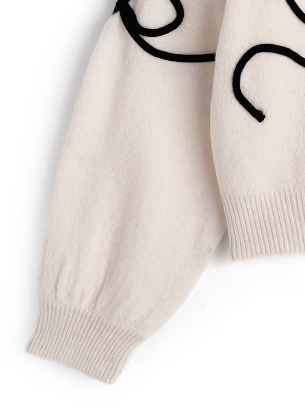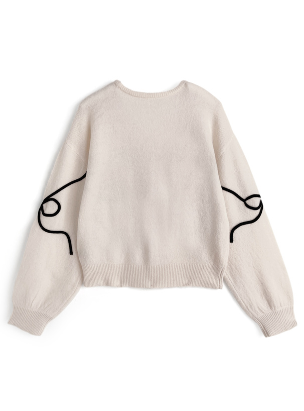 リボンを描いたようなライン刺繍が、視線を惹きつけるアクセントに。