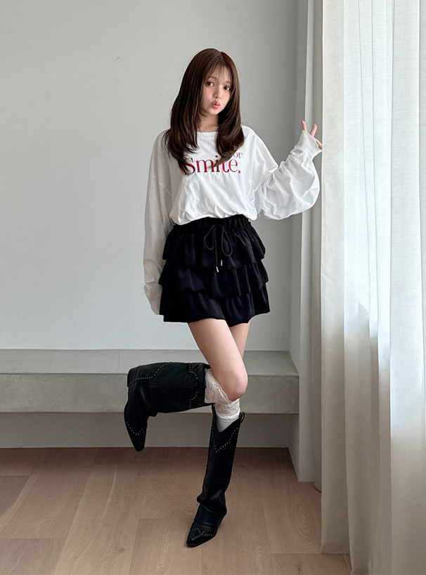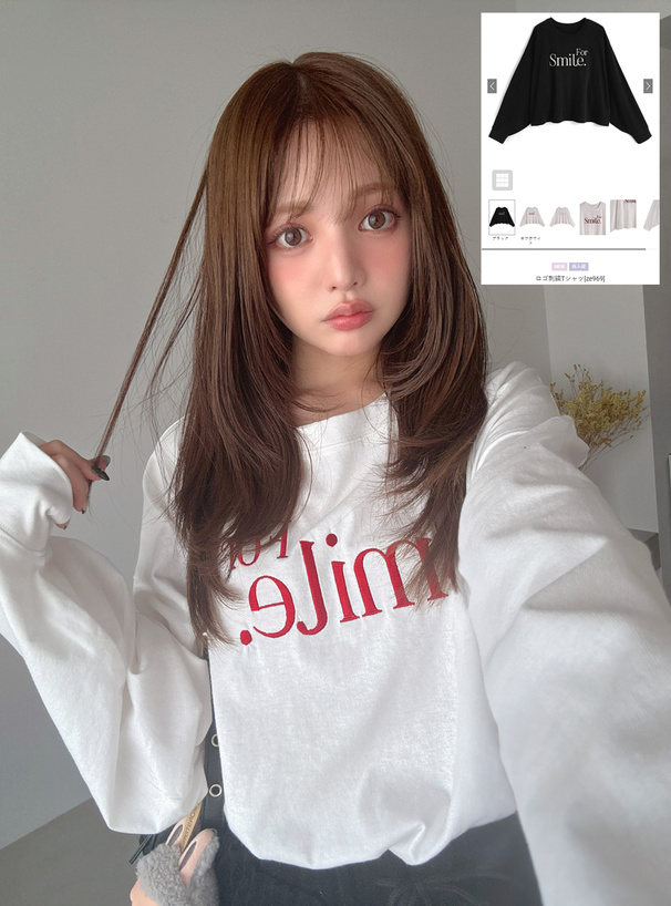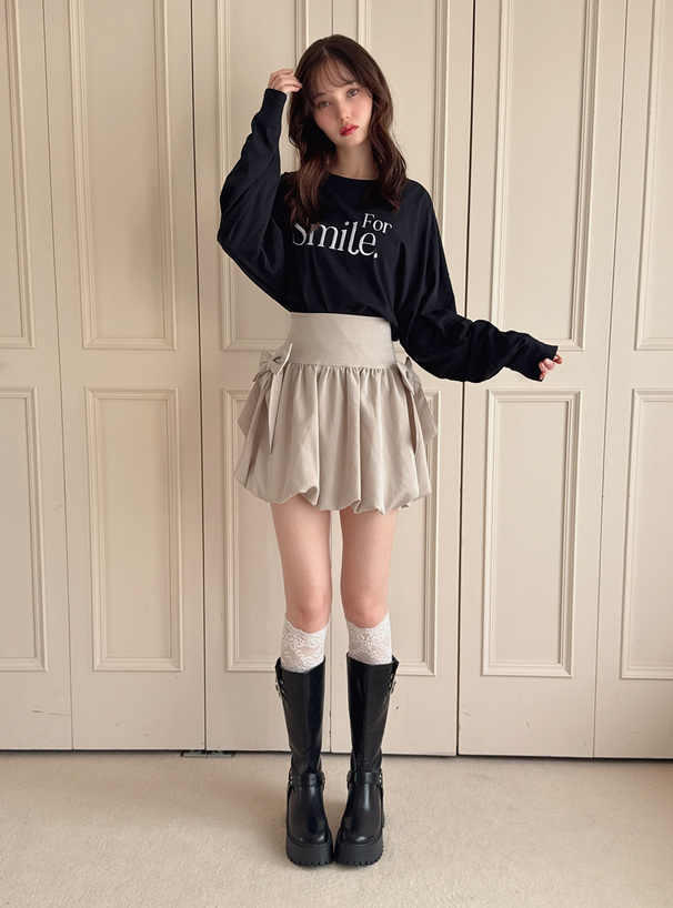 パフスリーブロゴ刺繍Tシャツ