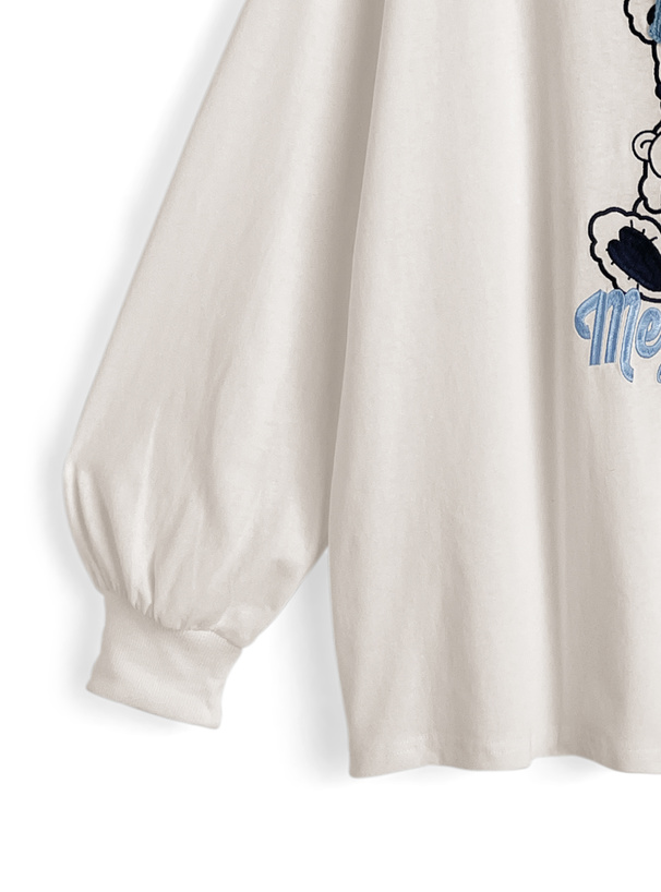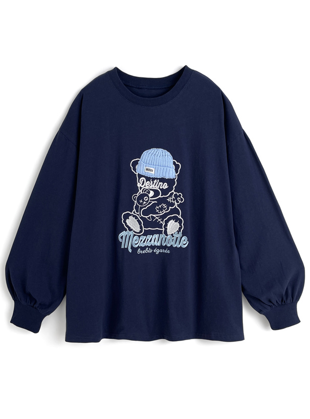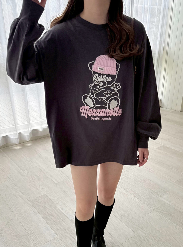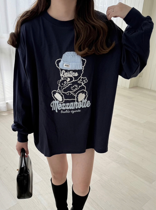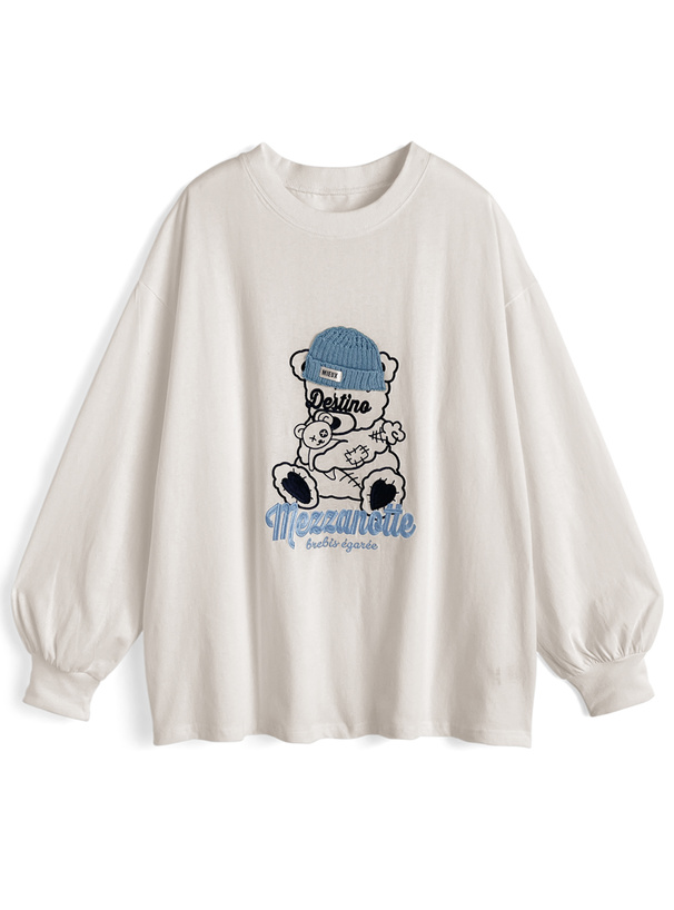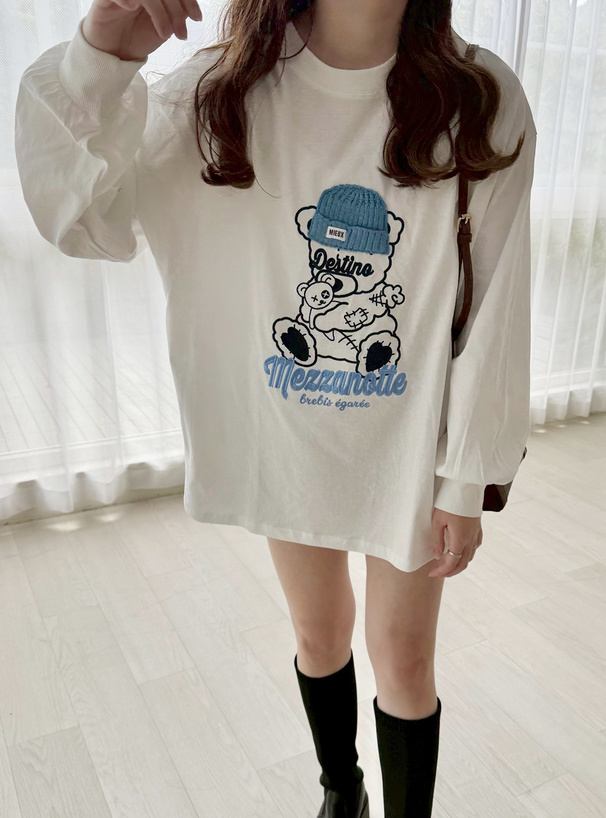 くまモチーフの刺繍デザインが目を惹く、ロング丈のTシャツ。