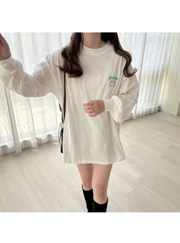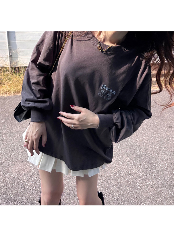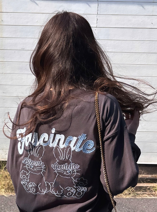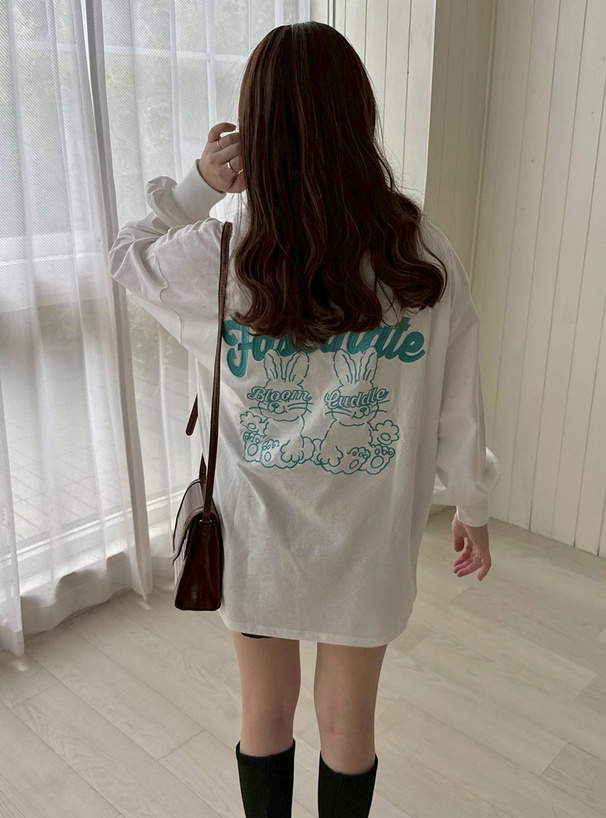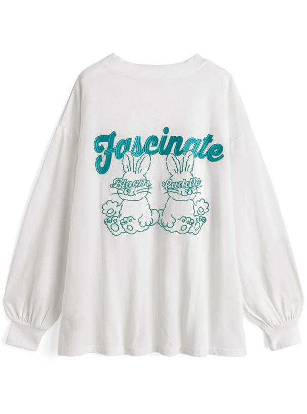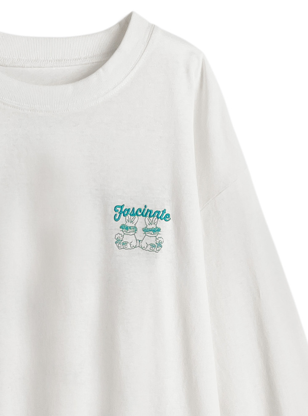 胸元とバックに遊び心溢れるうさぎモチーフの刺繍をあしらったTシャツ。