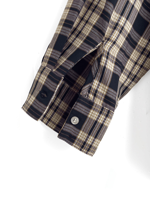 トラッドなチェック柄生地で仕立てた、落ち着きのある雰囲気のシャツ。