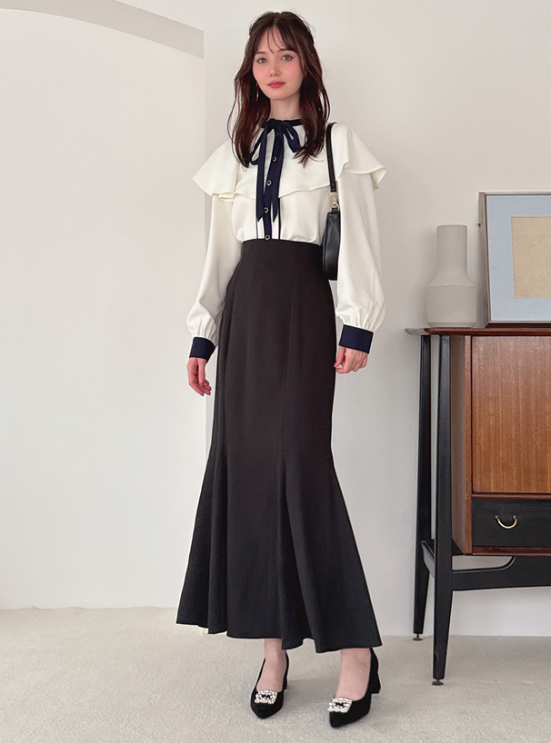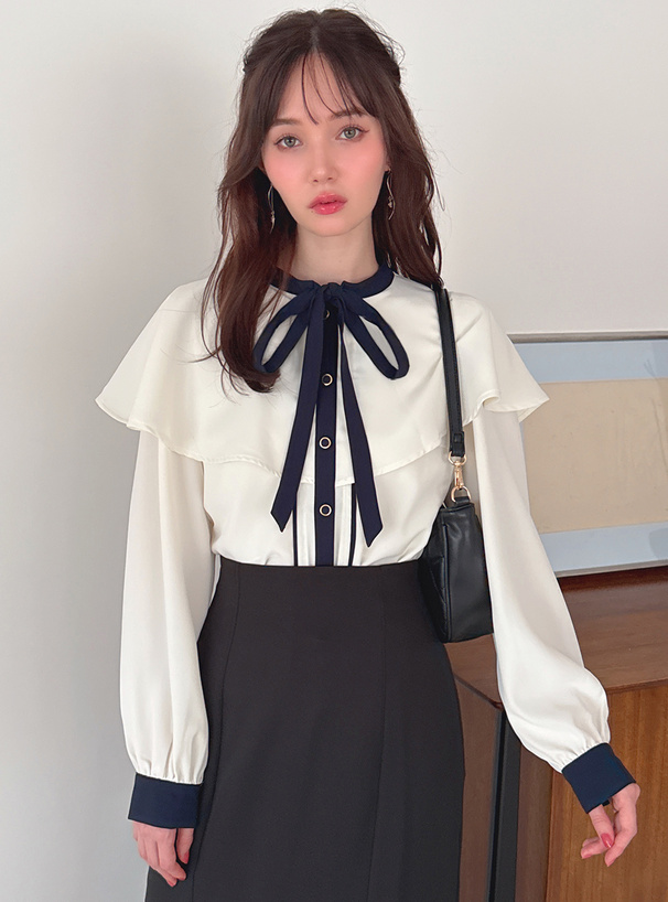 ベロアリボンオフショルダーリブニットトップス[pm812]