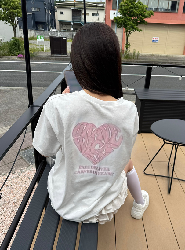 マットサテンの生地を縫い付けてより印象的になったハートロゴに視線が集まる。