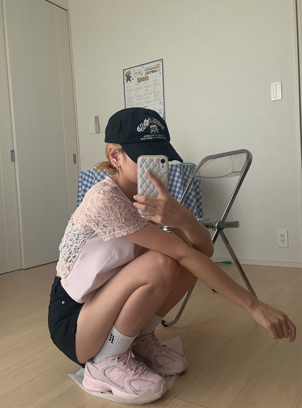 ガーリーさとカジュアルさを合わせて、甘辛ミックスに仕上げた一着。