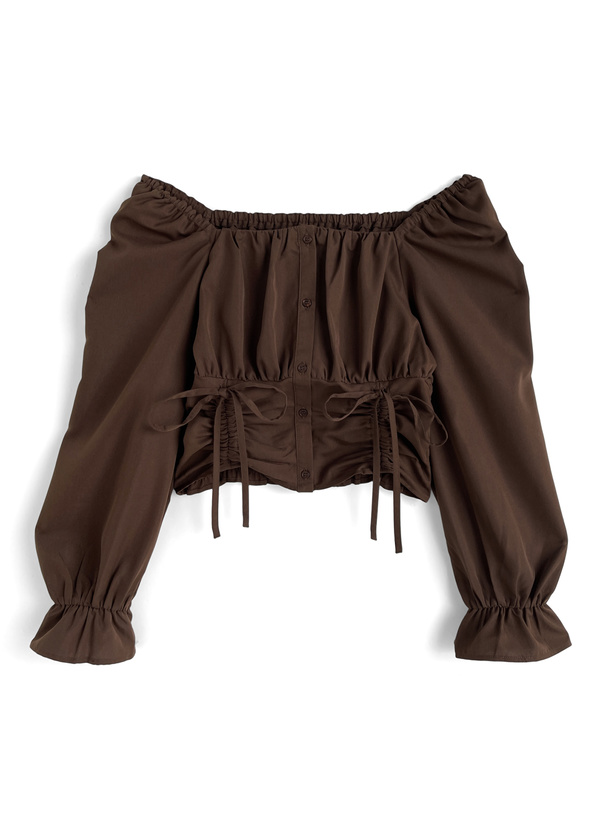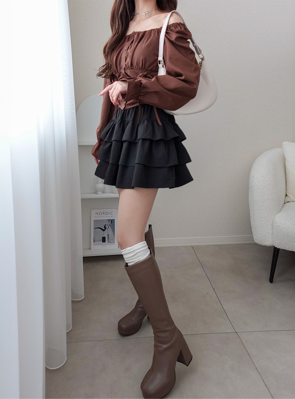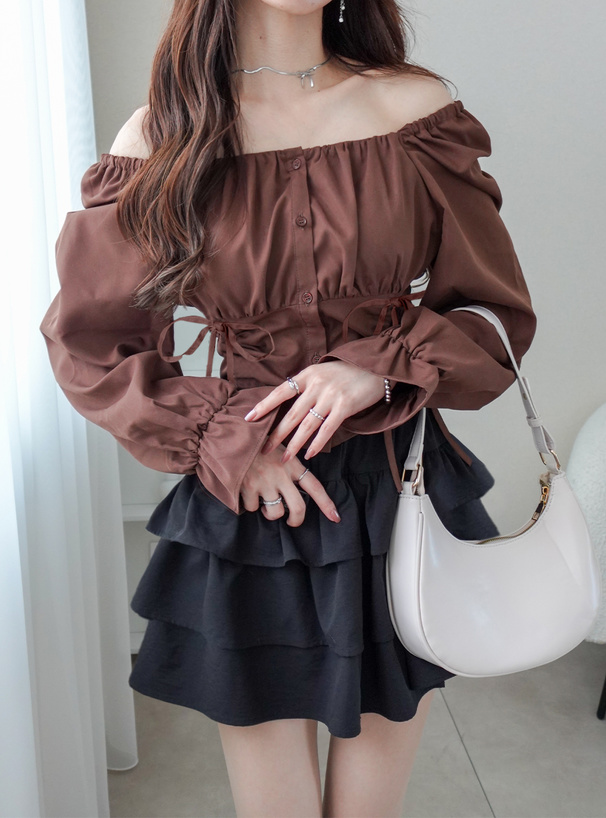 ベロアリボンオフショルダーリブニットトップス[pm812]