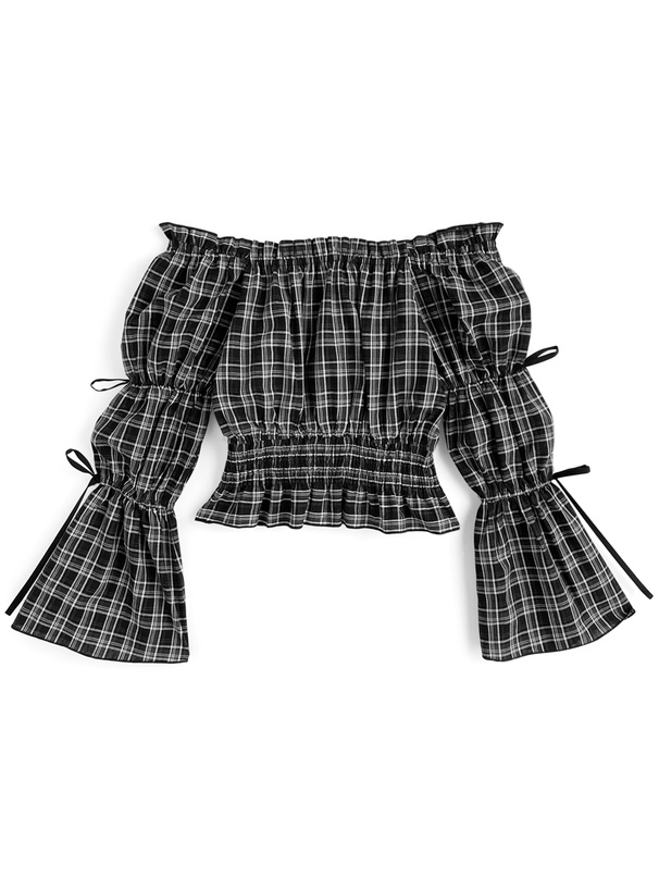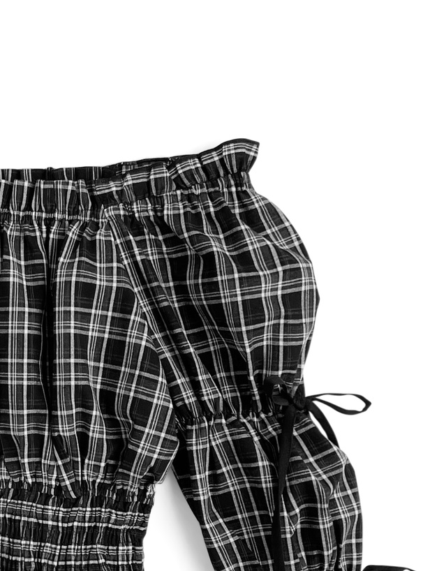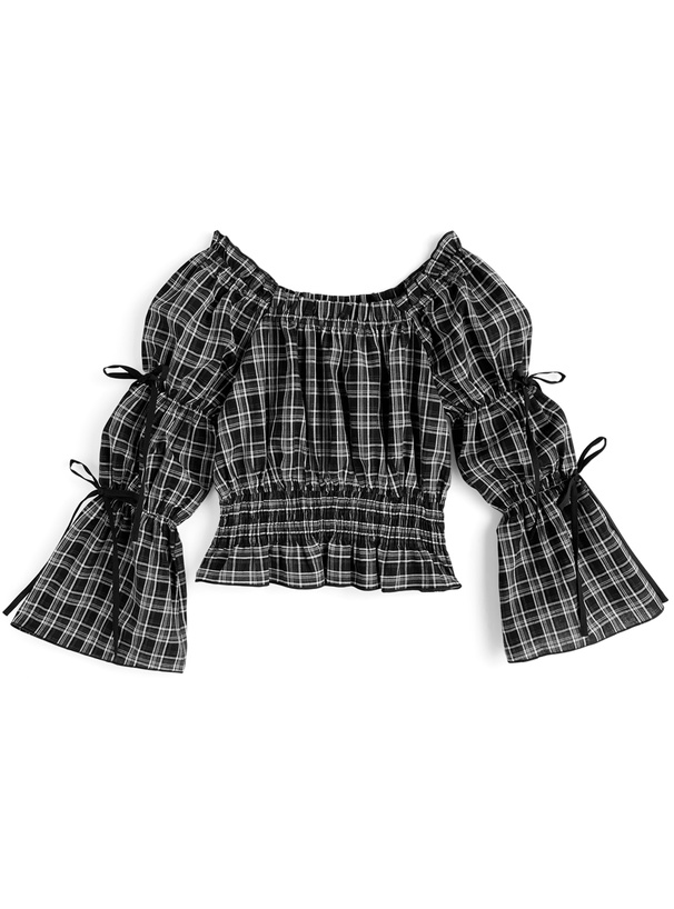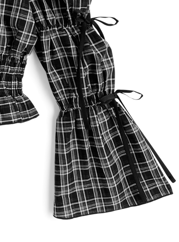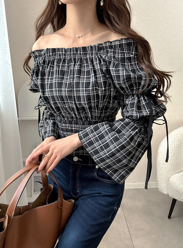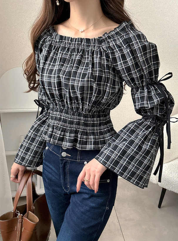 落ち着きのあるチェック柄にリボンディテールが大人フェミニンなブラウス。