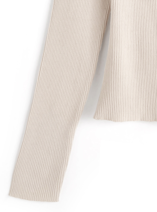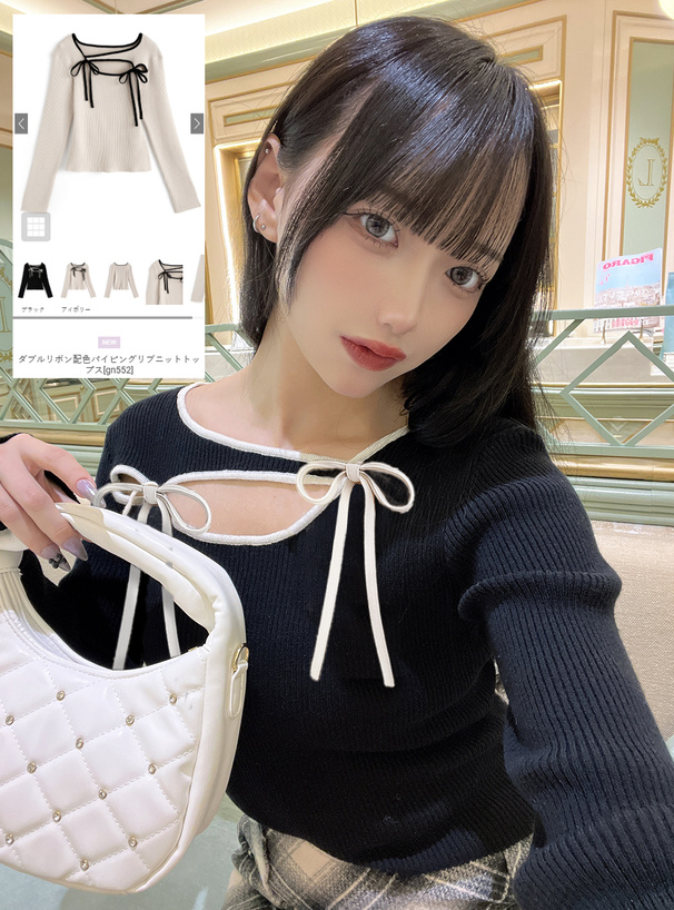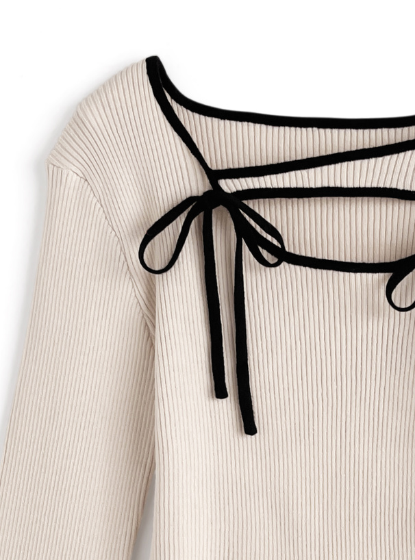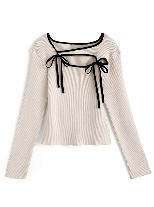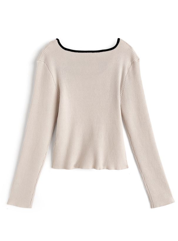柔らかいリブニットに配色パイピングを施したデザイントップス。