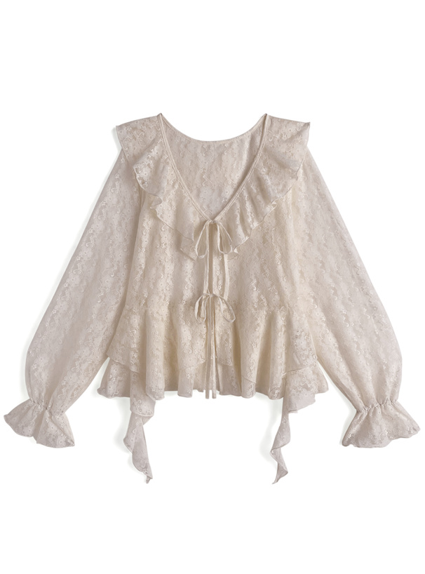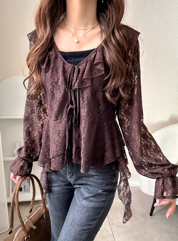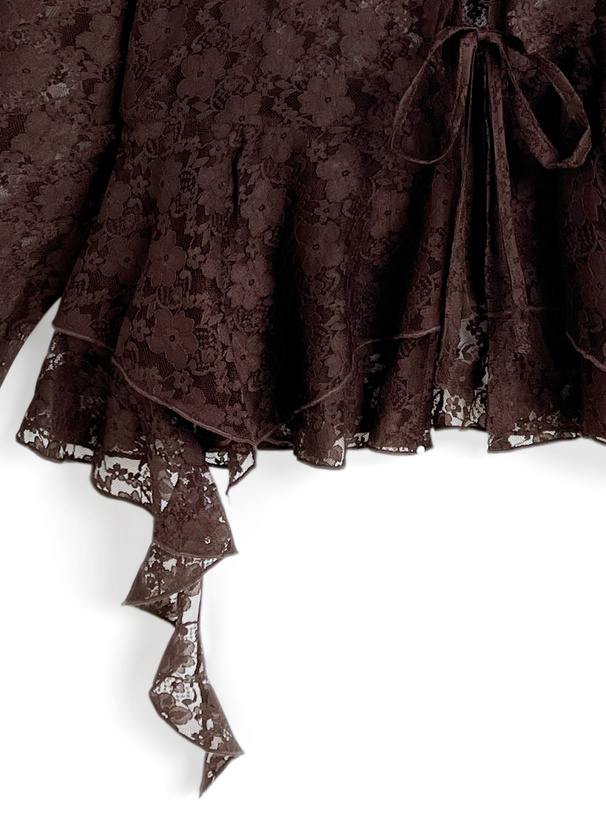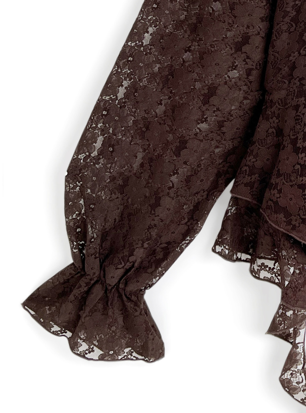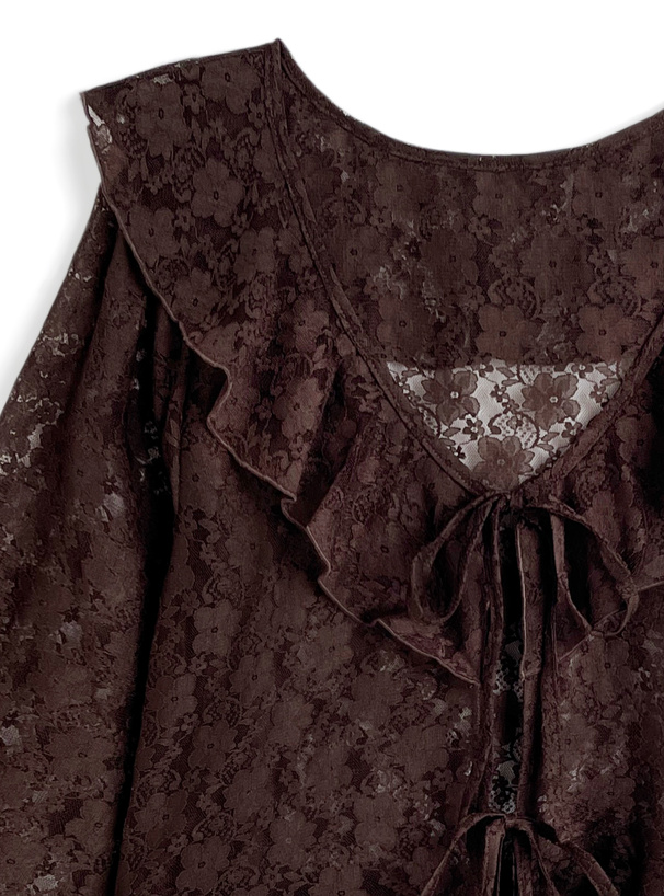花柄レース生地で仕立てた、フェミニンな雰囲気漂うカーディガン。