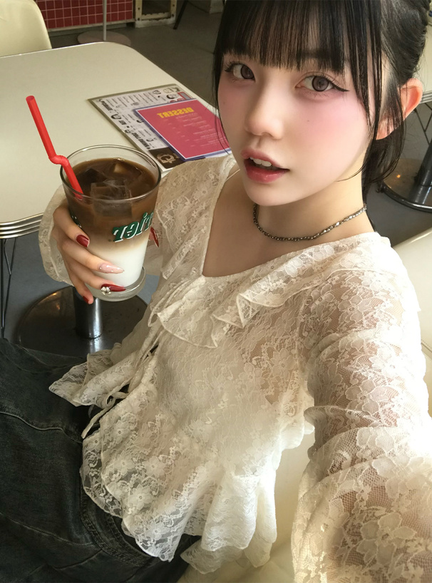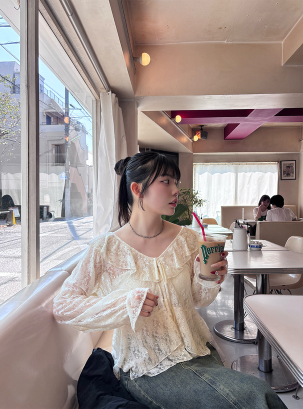 フレアな袖口も、仕草を女性らしく可憐に見せるポイント。