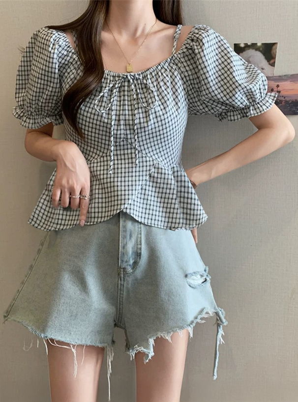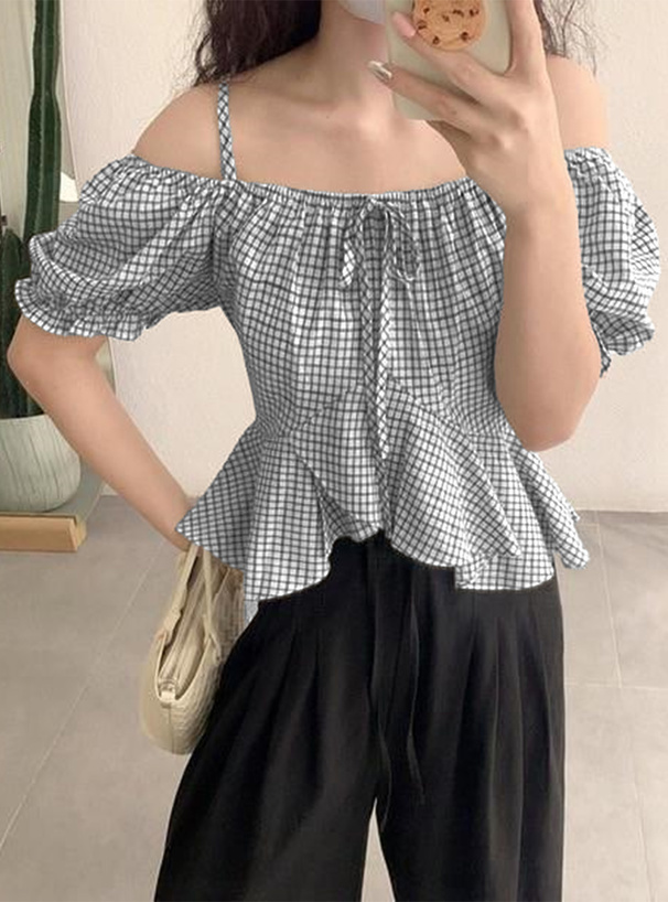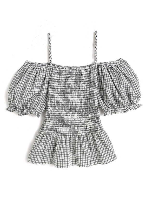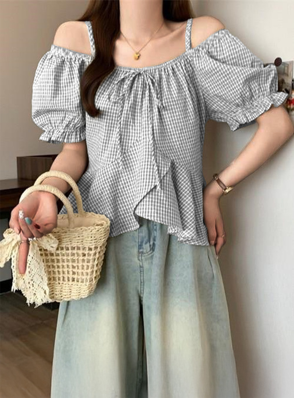 パフスリーブやラッフルフリルなど女性的なシルエットに仕立てたブラウス。
