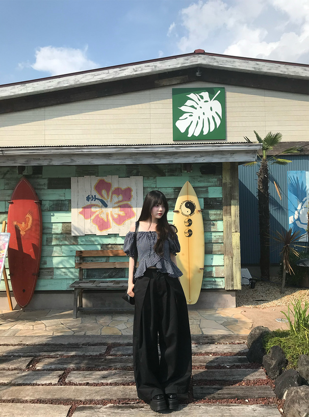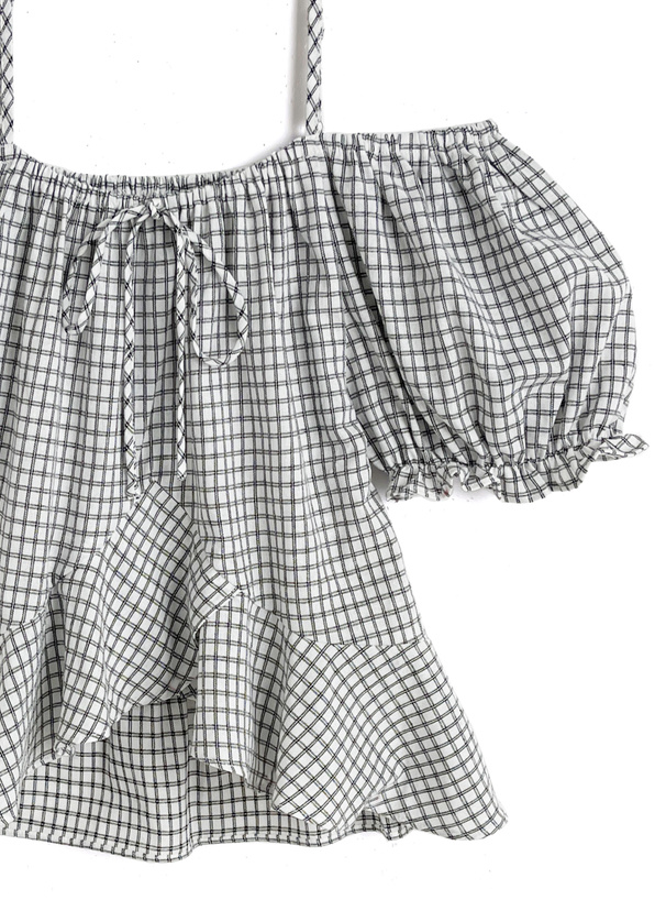 ナチュラルな生地感に細かい格子柄が甘を抑えシックな印象を与える。