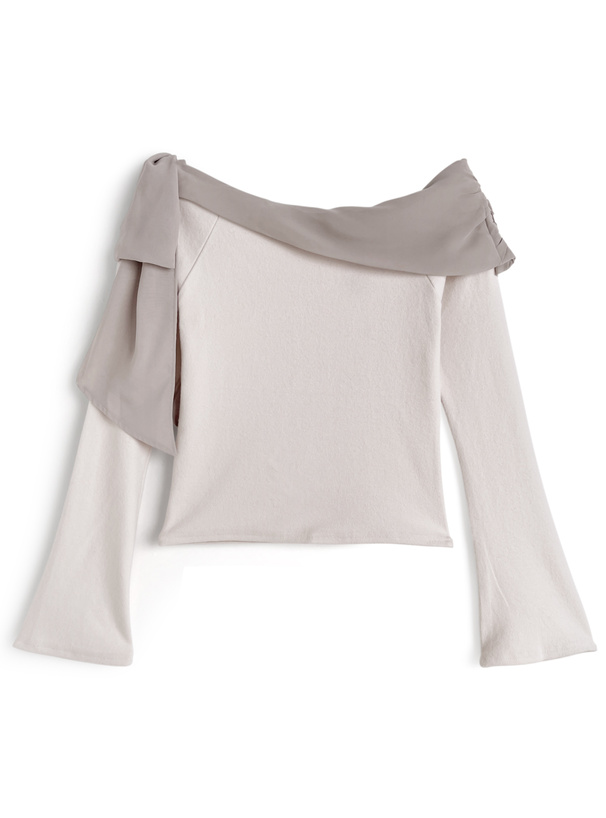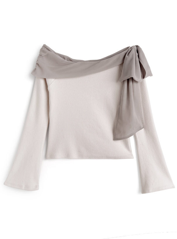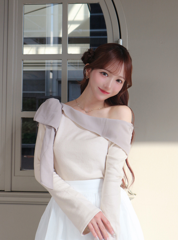 ベロアリボンオフショルダーリブニットトップス[pm812]
