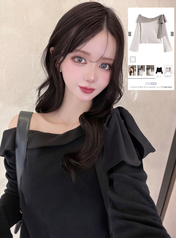 シフォンリボンワンショルダートップス[dk1562] GRL