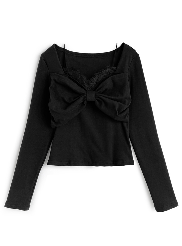 フロントに施した大きなリボンモチーフが乙女心をくすぐる。