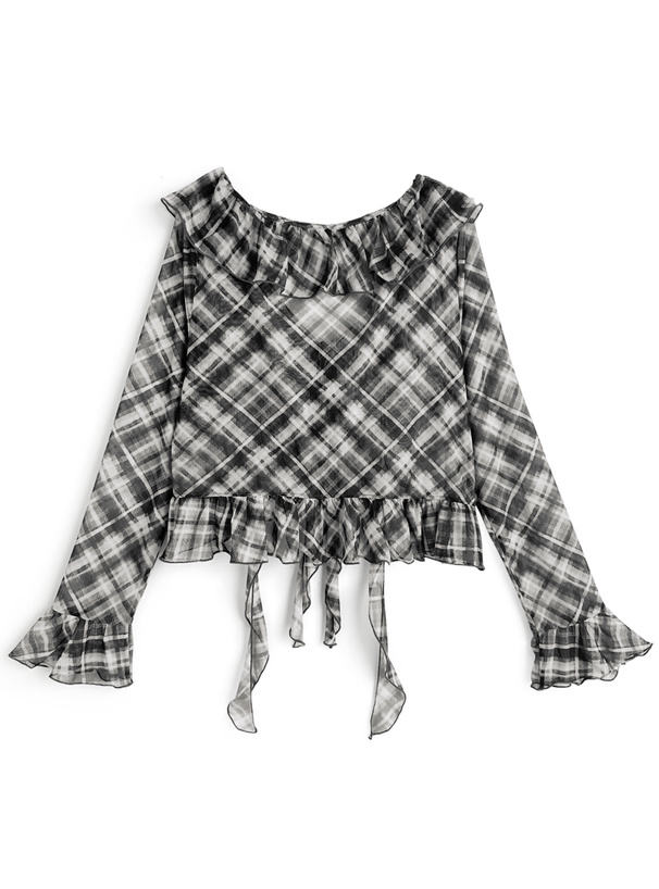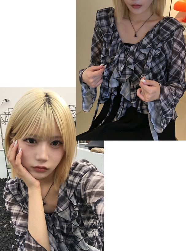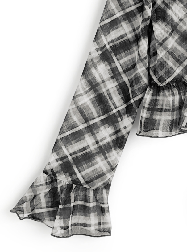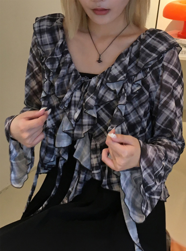 ニュアンスチェックのシアー素材が魅力のシックでエアリーなカーディガン。