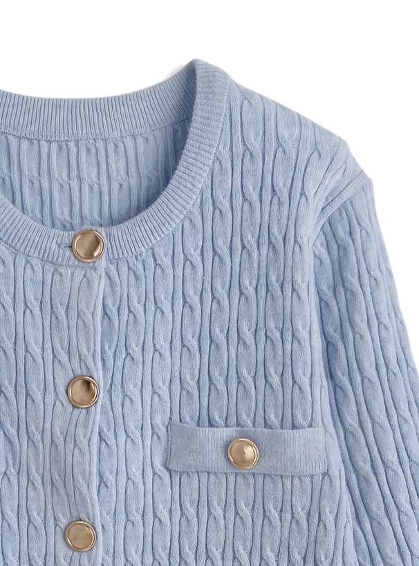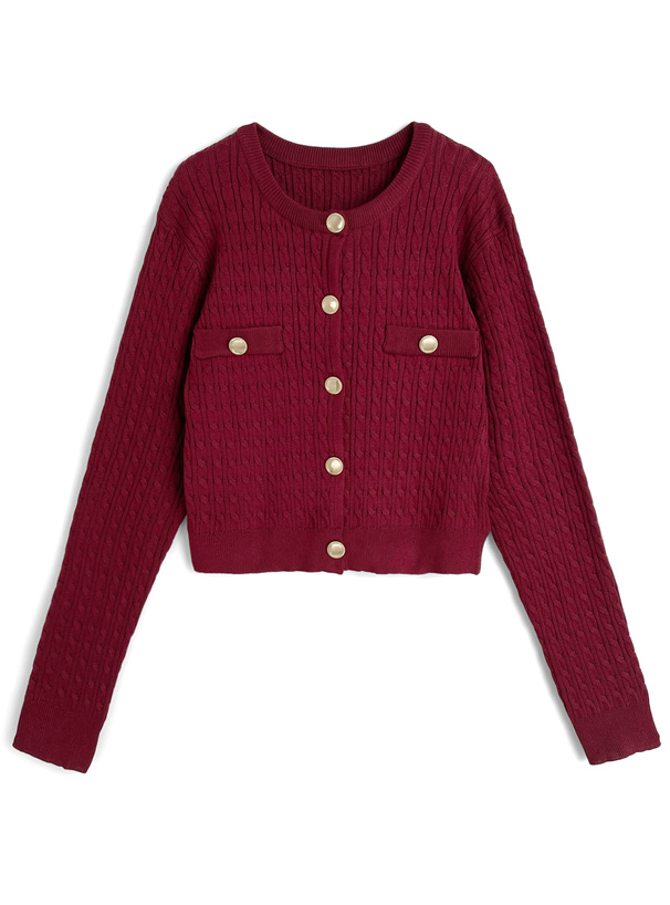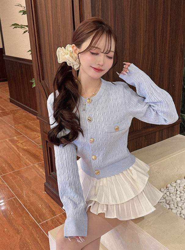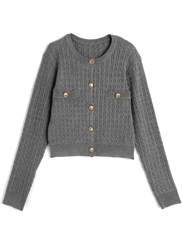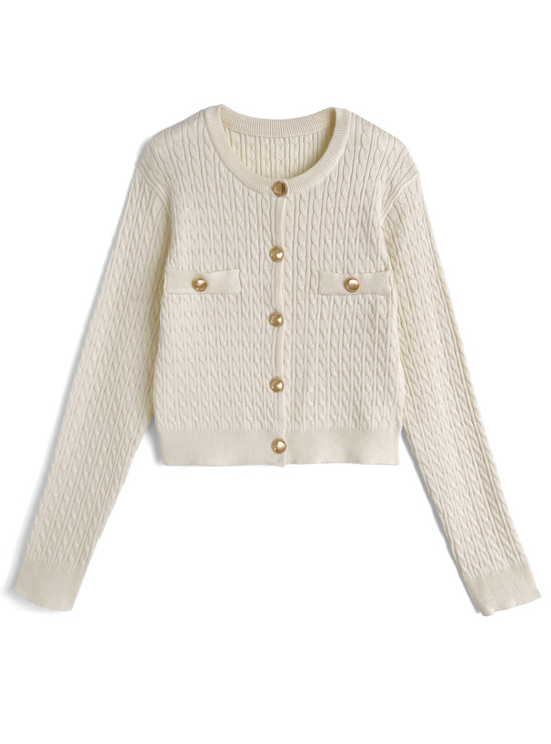 立体感のあるケーブル編みでクラシカルなニュアンスのカーディガン。