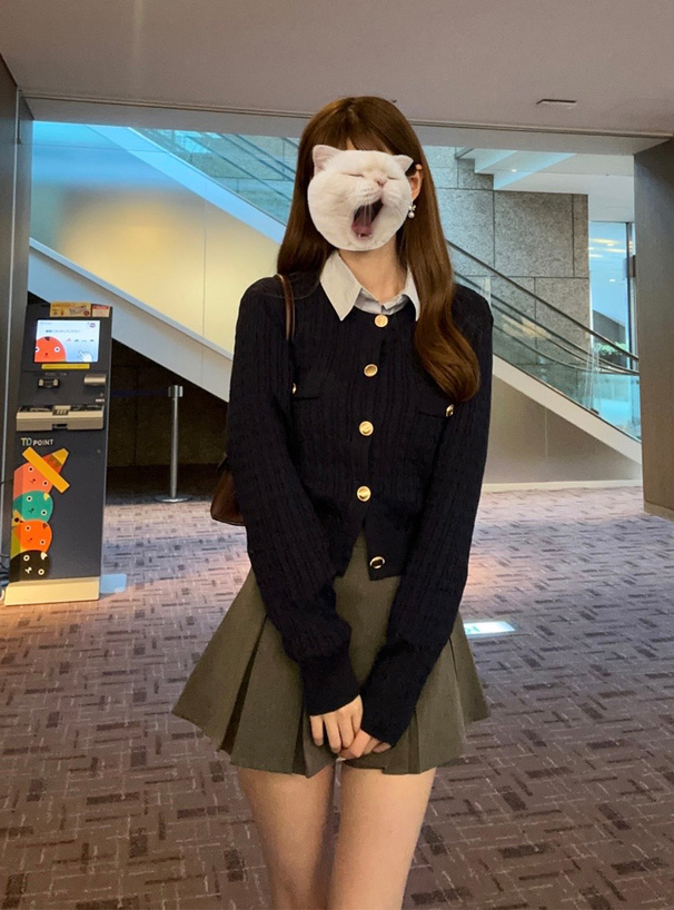 ゴールドボタンが上品な輝きを添え、スタイリングを格上げ。