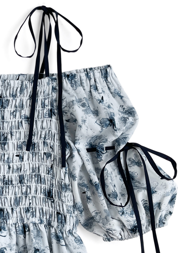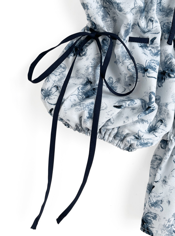 袖のリボンを締めればふんわりとしたパフができて、形を調整することも可能。