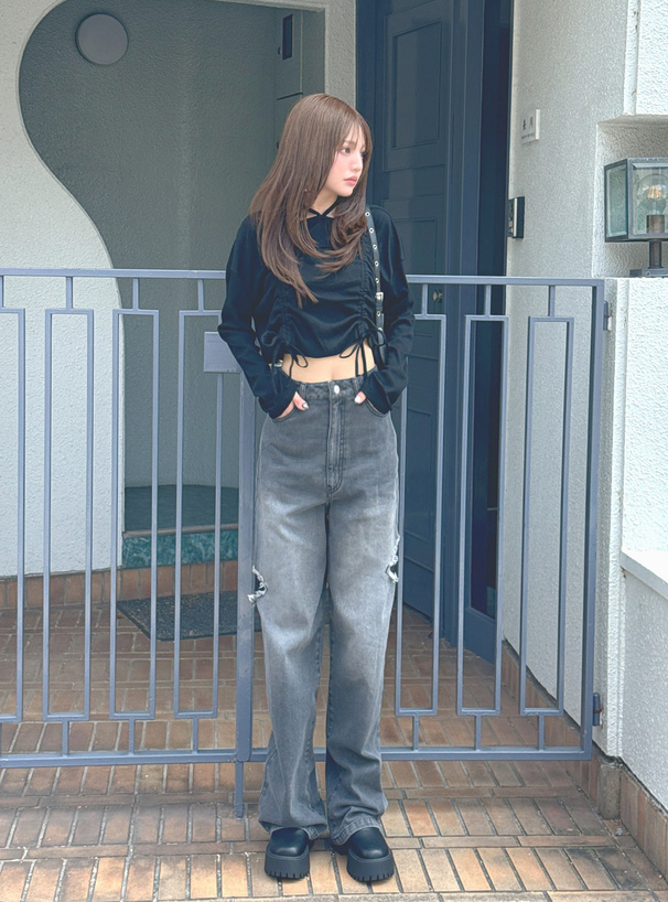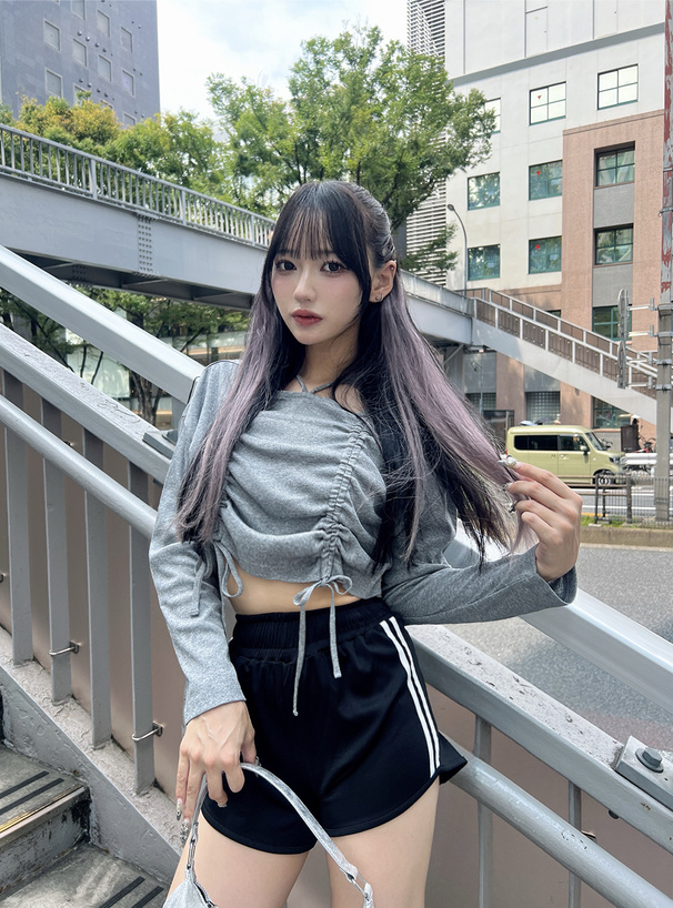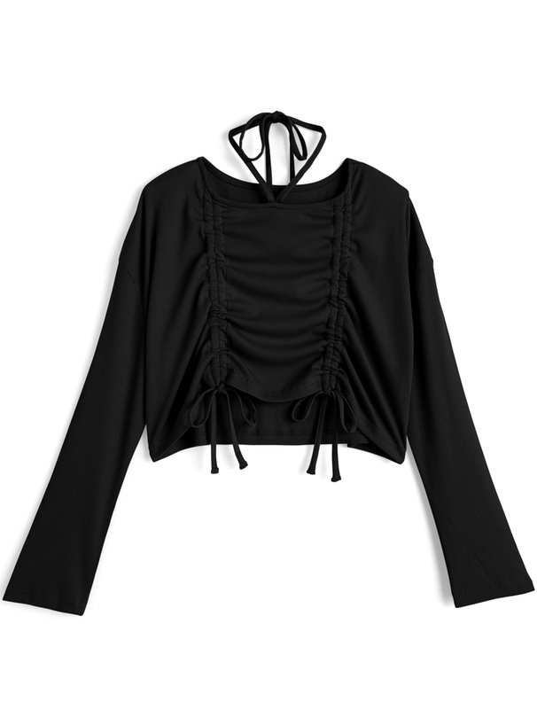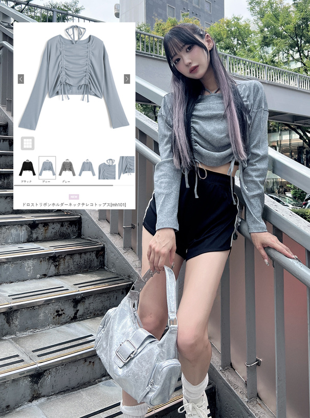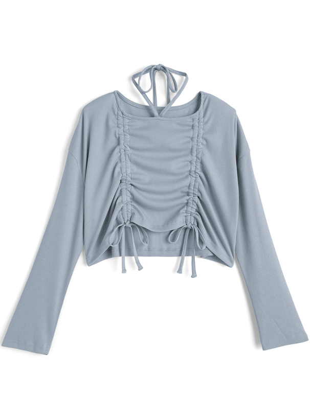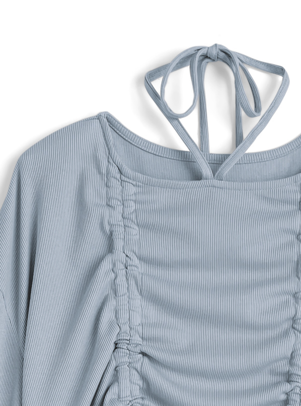 GRL グレイル ドロストリボンホルダーネックテレコトップス[mh101]